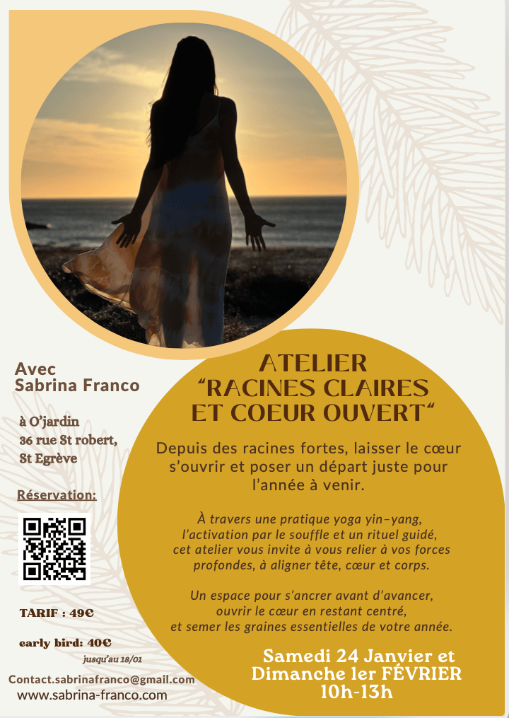 Ateliers Yoga avec Sabrina 14 janvier 2026 ~ O'JARDIN Partager : Partager sur Facebook(ouvre dans une nouvelle fenêtre) Facebook Imprimer(ouvre dans une nouvelle fenêtre) Imprimer Share on LinkedIn(ouvre dans une nouvelle fenêtre) LinkedIn J’aime chargement… Similaire Publié par O'JARDIN Voir tous les articles par O'JARDIN